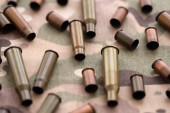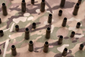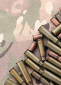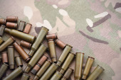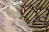 Zdjęcie "Duża ilość pocisków z pocisków karabinów szturmowych na starej tkaninie kamuflażowej. Wojna i koncepcja wojskowa" może być wykorzystywane do celów osobistych i komercyjnych zgodnie z warunkami zakupionej licencji Royalty-free. Obraz jest dostępny do pobrania w jakości wysokiej rozdzielczości do 5760x3840.