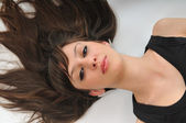 portret piękne dziewczyny nastolatki długie kręcone włosy i czystą skórę t