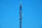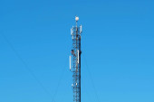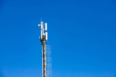Zdjęcie "Dwóch robotników na wieży komórkowej. Wysoka wysokość działa. Personel techniczny w pracy. Wieża komórkowa na niebieskim tle. Remonterzy obsługują wieżę komórkową, instalują nowy sprzęt" może być wykorzystywane do celów osobistych i komercyjnych zgodnie z warunkami zakupionej licencji Royalty-free. Obraz jest dostępny do pobrania w jakości wysokiej rozdzielczości do 5760x3840.