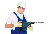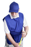 średnim wieku pracownik wprowadzenie krem na jego rany