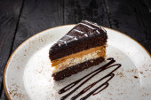 Czekoladowe idealna Karmel ciastko z kremem (płytkie dof)