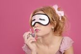 blond moda kobieta królewna picia kawy lub herbaty