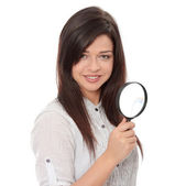 Zdjęcie "dziewczyna ze szkłem powiększającym" może być wykorzystywane do celów osobistych i komercyjnych zgodnie z warunkami zakupionej licencji Royalty-free. Obraz jest dostępny do pobrania w jakości wysokiej rozdzielczości do 5760x3840.
