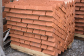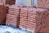 Kielnia i stos cegieł na białym tle