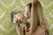 kobieta moda blond z kapelusz w barokowym złote lustro