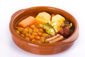Madryt gulasz na ceramika garnczek, hiszpański jedzenie