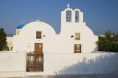 Fasada Biała Cerkiew Grecka w Oia (Ia) na wyspie Santorini (Thera) - Cyklady - w Grecji - Europa