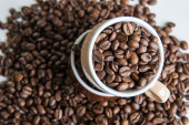 Zdjęcie "Kubek kropkowany stojąc na ziarna kawy. Rozmycie, widok z góry, o ostrości" może być wykorzystywane do celów osobistych i komercyjnych zgodnie z warunkami zakupionej licencji Royalty-free. Obraz jest dostępny do pobrania w jakości wysokiej rozdzielczości do 5760x3840.