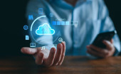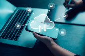 Zdjęcie "Koncepcja bezpieczeństwa w chmurze i tworzenia kopii zapasowych danych z powiadomieniem o alarmie mobilnym, bezpieczną pamięcią masową w chmurze i cyfrowym systemem ochrony danych dla cyberbezpieczeństwa i technologii przetwarzania w chmurze." może być wykorzystywane do celów osobistych i komercyjnych zgodnie z warunkami zakupionej licencji Royalty-free. Obraz jest dostępny do pobrania w jakości wysokiej rozdzielczości do 5760x3840.
