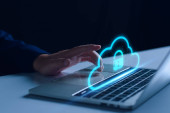 Koncepcja bezpieczeństwa w chmurze i tworzenia kopii zapasowych danych z powiadomieniem o alarmie mobilnym, bezpieczną pamięcią masową w chmurze i cyfrowym systemem ochrony danych dla cyberbezpieczeństwa i technologii przetwarzania w chmurze.