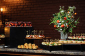 Elegancki bufet z bufetem Citrus Floral Centerpiece.