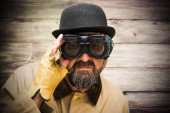 Zdjęcie "Biznesmen z maska gazowa, czekając na coś wypada powyżej" może być wykorzystywane do celów osobistych i komercyjnych zgodnie z warunkami zakupionej licencji Royalty-free. Obraz jest dostępny do pobrania w jakości wysokiej rozdzielczości do 5760x3840.