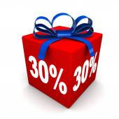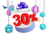prezent i tridtsatiprotsentnaya zniżki na białym tle