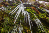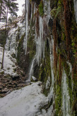 Zdjęcie "Zbliżenie grubych, turkusowych formacji lodowych i zamarzniętych fal tworzących małą jaskinię lodową na skalistym brzegu jeziora Vnern w Szwecji podczas głębokiego zamarzania w sezonie zimowym." może być wykorzystywane do celów osobistych i komercyjnych zgodnie z warunkami zakupionej licencji Royalty-free. Obraz jest dostępny do pobrania w jakości wysokiej rozdzielczości do 5760x3840.