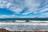 Plantacje wodorostów na plaży, glonów w czasie odpływu