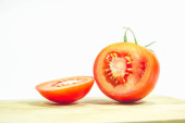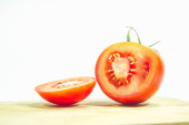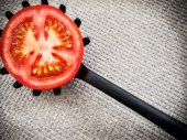 Pół pomidora na łyżkę czarna kuchnia z tworzyw sztucznych.