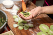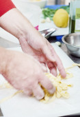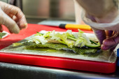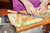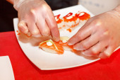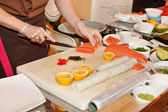 szef kuchni przygotowuje sushi w kuchni
