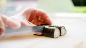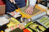 szef kuchni przygotowuje sushi w kuchni