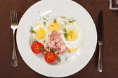 Zdjęcie "Jaja smażone z boczkiem i warzywami" może być wykorzystywane do celów osobistych i komercyjnych zgodnie z warunkami zakupionej licencji Royalty-free. Obraz jest dostępny do pobrania w jakości wysokiej rozdzielczości do 5760x3840.