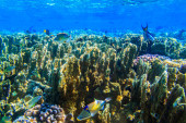 Sohal Surgeonfish (Acanthurus sohal) lub sohal tang, jest endemiczne Morze Czerwone. Sohal chirurg na rafie koralowej na Morzu Czerwonym w Parku Narodowym Ras Mohammed. Półwysep Synaj w Egipcie