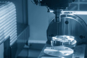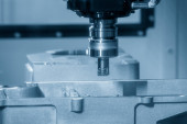 Precyzyjny proces wykonywania otworów na aluminiowych częściach samochodowych za pomocą frezarki CNC.