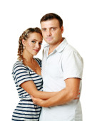portret romantyczna para młodych stojących razem nad białym