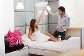Zdjęcie "Pillow fight . Couple in love" może być wykorzystywane do celów osobistych i komercyjnych zgodnie z warunkami zakupionej licencji Royalty-free. Obraz jest dostępny do pobrania w jakości wysokiej rozdzielczości do 5760x3840.