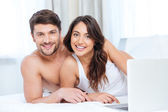 Zdjęcie "szczęśliwa para korzysta z laptopa w domu" może być wykorzystywane do celów osobistych i komercyjnych zgodnie z warunkami zakupionej licencji Royalty-free. Obraz jest dostępny do pobrania w jakości wysokiej rozdzielczości do 5760x3840.