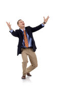 Przeprowadzka na białym tle biznesmenów w średnim wieku