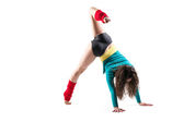 Młoda piękna kobieta w czarny T-shirt i spodnie taneczne