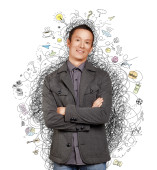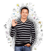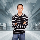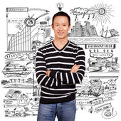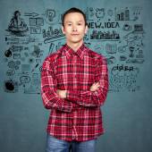 azjatycki człowiek patrząc na kamery