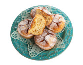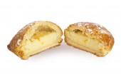 Neapolitańskie choux bułki z kremem, znane jako Zeppole di San Giuseppe, to tradycyjne włoskie desery zwieńczone słodkim kremem i ciemnymi wiśniami, zakurzone cukrem pudrem pudrem