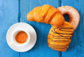 Tradycyjne włoskie ciasta Zeppole di San Giuseppe przedstawiające ciasto choux, żółte ciasta, dzikie czereśnie i cukier puder, symbolizujące włoską tradycję kulinarną