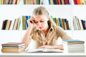 młody student w bibliotece