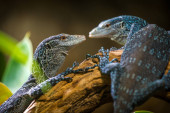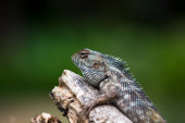 Zdjęcie "Blisko kameleon siedzi na gałęzi ujawniając skomplikowaną strukturę skali i wyciszone ziemskie dźwięki, płytka głębokość" może być wykorzystywane do celów osobistych i komercyjnych zgodnie z warunkami zakupionej licencji Royalty-free. Obraz jest dostępny do pobrania w jakości wysokiej rozdzielczości do 5760x3840.