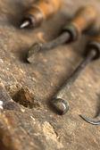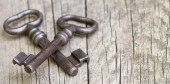 Stare klucze na drewnianym stole, zbliżenie