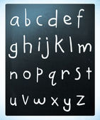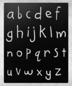 kompletny alfabet angielski ręcznie z białą kredą na blac