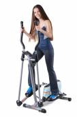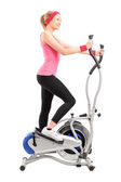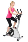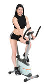 młoda kobieta robi kryty rowerowych ćwiczenia