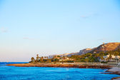 wspaniały hiszpańskiej plaży latem na zachodzie słońca