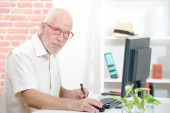 Zdjęcie "Połowie wieku biznesmen siedzi przy biurku rozmowy na telefon komórkowy" może być wykorzystywane do celów osobistych i komercyjnych zgodnie z warunkami zakupionej licencji Royalty-free. Obraz jest dostępny do pobrania w jakości wysokiej rozdzielczości do 5760x3840.