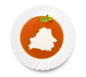 Zupa pomidorowa z kremem w kształcie Maroko płyta. (seria)