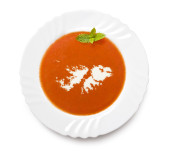 Zupa pomidorowa z kremem w kształcie Atol Johnston płyta. (ser