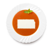 Zupa pomidorowa z kremem w kształcie North Dakota płyta. (serie