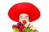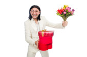 Człowiek z kwiatów tulipanów na białym tle