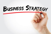Koncepcja Biznesowa: znak strategii biznesowej na tle budynku