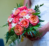Piękny bukiet ślubny. Panny młodej i pana młodego z bliska ręce