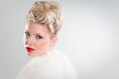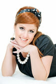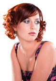 Ciemnowłosa dziewczyna portret marzy atrakcyjny czerwony w białe