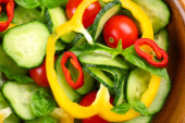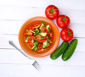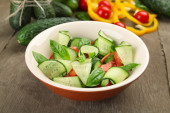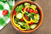 Surówka z ogórków i pieprz na drewniane tła