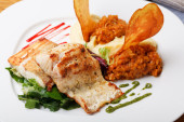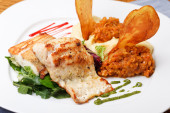 Sandacz pieczony filet z tłuczonymi ziemniakami
