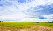 Wiosna lato tło - wiejskiej drodze w zielonej trawie pole meado
